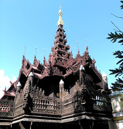 Fin des visites de Mandalay avec la découverte du monastère Shwenandaw, célèbre pour la finesse de ses sculptures sur bois et de la pagode Kuthawdaw avec sa gigantesque bibliothèque de pierre (739 stèles).